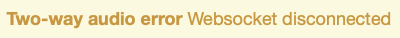 ここで、Two-way audio というボタンをクリックし、画面に従って HTTPS 通信を選ぶと双方向音声ができるはずなのですが、Safari ではカメラ画像の下に次のような表示が出て、Two-way audio のトグルがオフに戻ってしまいます。